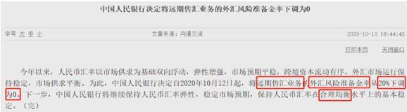 2018年,和美國(guó)貿(mào)易摩擦,匯率從6.27貶值到6.8的時(shí)候,風(fēng)險(xiǎn)準(zhǔn)備金被上調(diào)到20%,之后匯率一直貶值到6.95才止住。