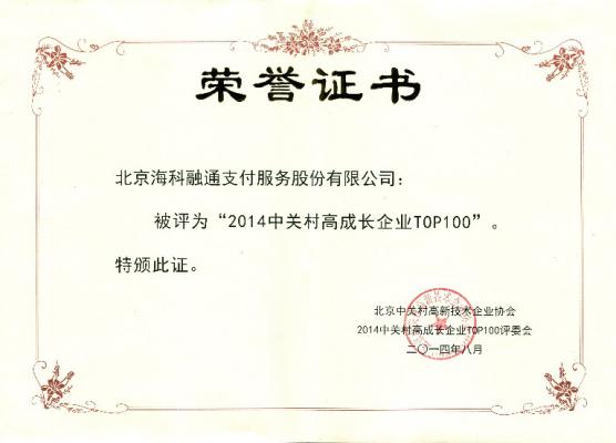 公司成為“中關村高成長企業(yè)TOP100”企業(yè)