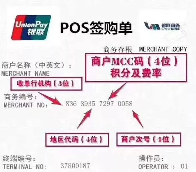 pos機(jī)的商戶編號(hào)一共是15位,編號(hào)含義:機(jī)構(gòu)代碼(3位)+地區(qū)碼(4位)+商戶類型(4位)+商戶順序號(hào)(4位)。